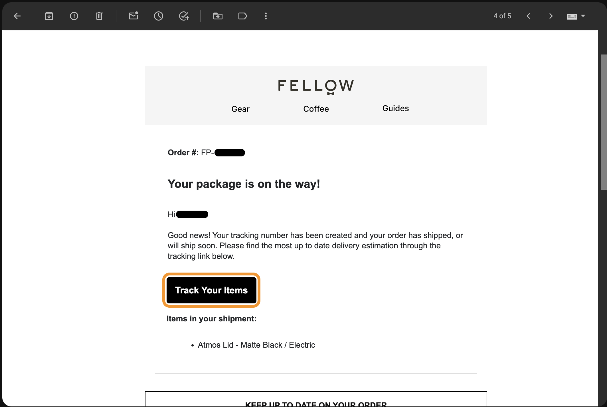 Depending on what's included in an order, like larger products or coffees, the order may be split into multiple shipments. If that's the case, one part will likely arrive before the other and make it seem like you're missing something, when the rest is actually on the way. One way to check the tracking for split shipments is by clicking through the shipment options toward the top left of the tracking page.
